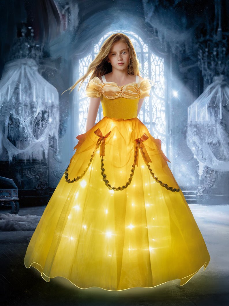 【Light up】With 50-60PCS soft LED light, shiny dress. 2. The light will not change hot. 3. The light is hidden in the dress, when do not use it, it will not affect the beauty of the skirt.