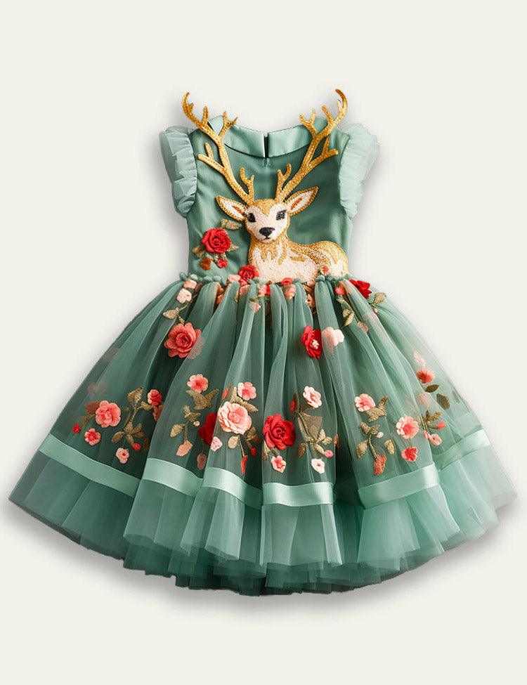 Mom&Me Festival Reindeer Embroidered Tulle Dress