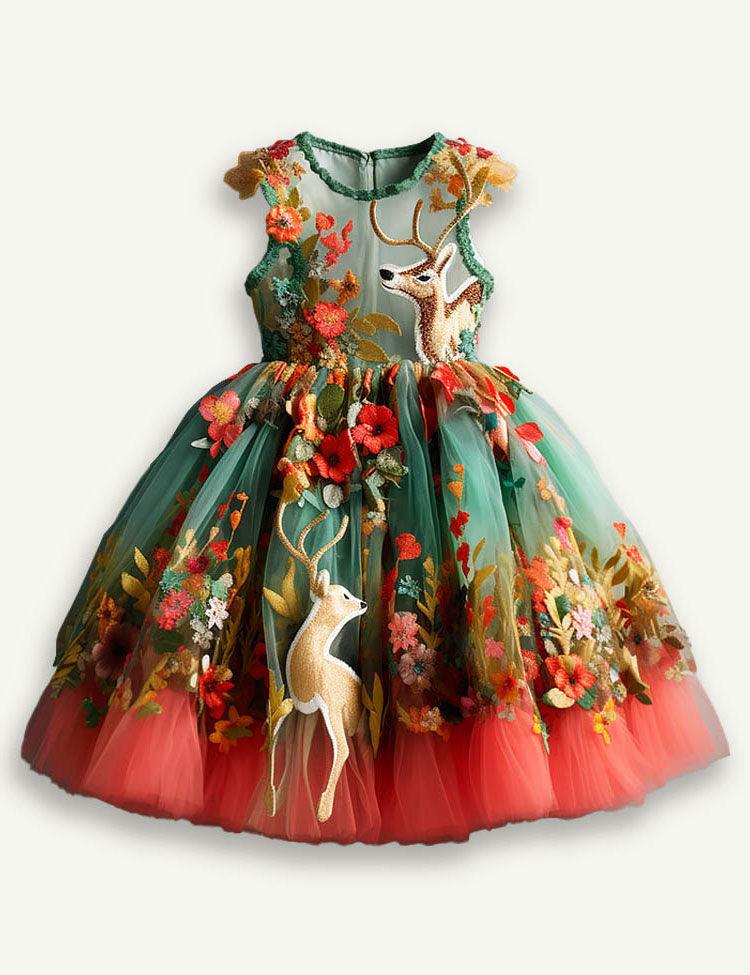 Mom&Me Festival Reindeer Embroidered Tulle Dress
