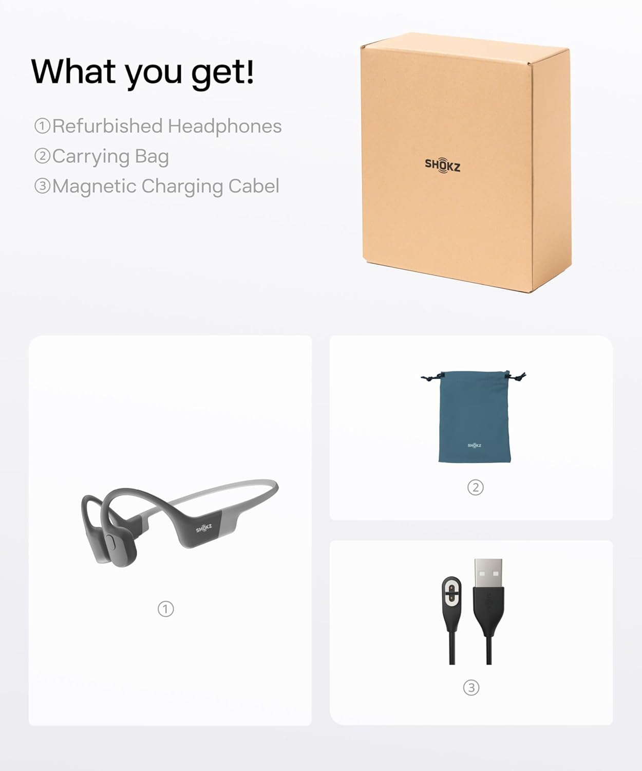 - Comodidad de oído abierto El diseño innovador de OpenRun cuenta con un marco envolvente y liviano y un ajuste inalámbrico de oído abierto para una escucha cómoda sin necesidad de audífonos. Incluye diadema Shokz.