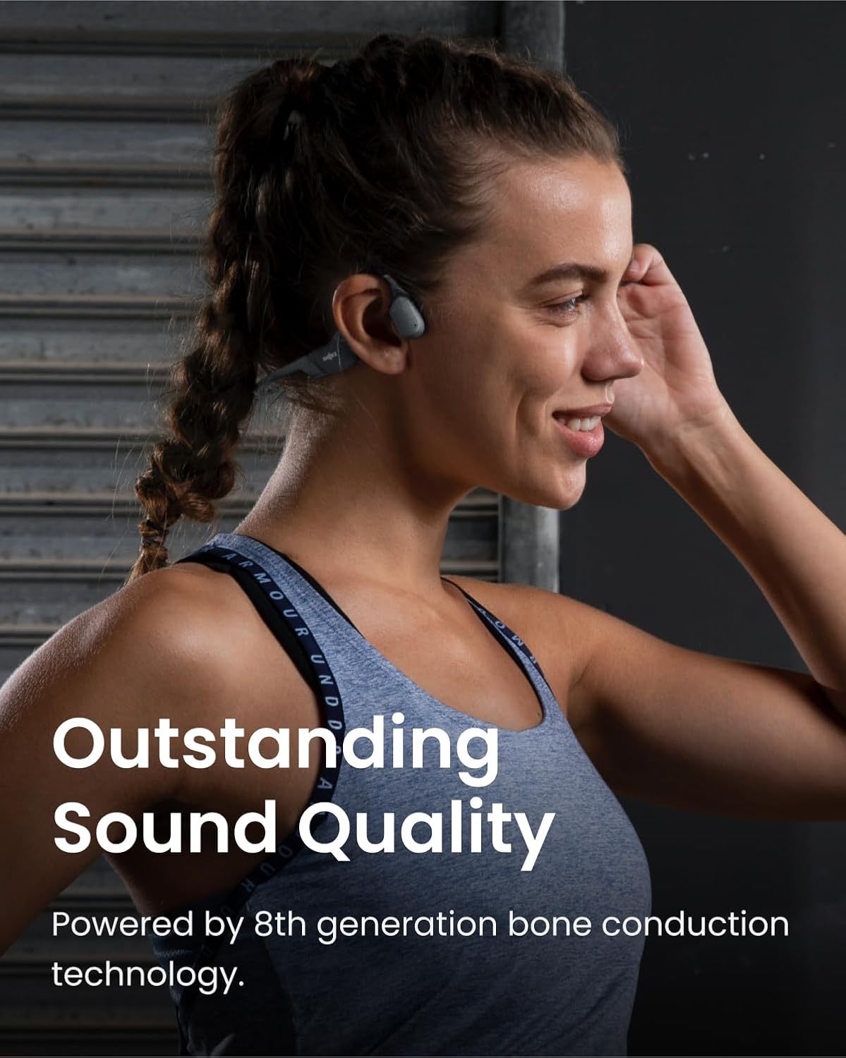 Experimenta una comodidad y seguridad inigualables con nuestros auriculares deportivos SHOKZ OpenRun. Estos auriculares inalámbricos de oído abierto ofrecen audio premium directamente a tu oído interno a través de las vibraciones del pómulo, manteniendo tus oídos libres para la conciencia situacional durante los entrenamientos y las carreras. Con una clasificación de impermeabilidad IP67, son resistentes al sudor y al agua, perfectos para actividades de fitness intensas. Disfruta de hasta 8 horas de música y llamadas, con una carga rápida de 10 minutos que proporciona una duración adicional de la batería de 1,5 horas. El marco envolvente y la diadema Shokz incluida garantizan un ajuste seguro y cómodo. Mantente motivado y conectado con nuestra tecnología de conducción ósea de octava generación, haciendo de estos auriculares una opción ideal para tu estilo de vida activo.