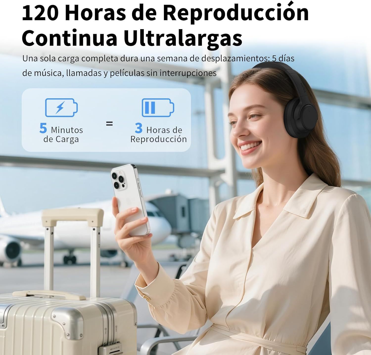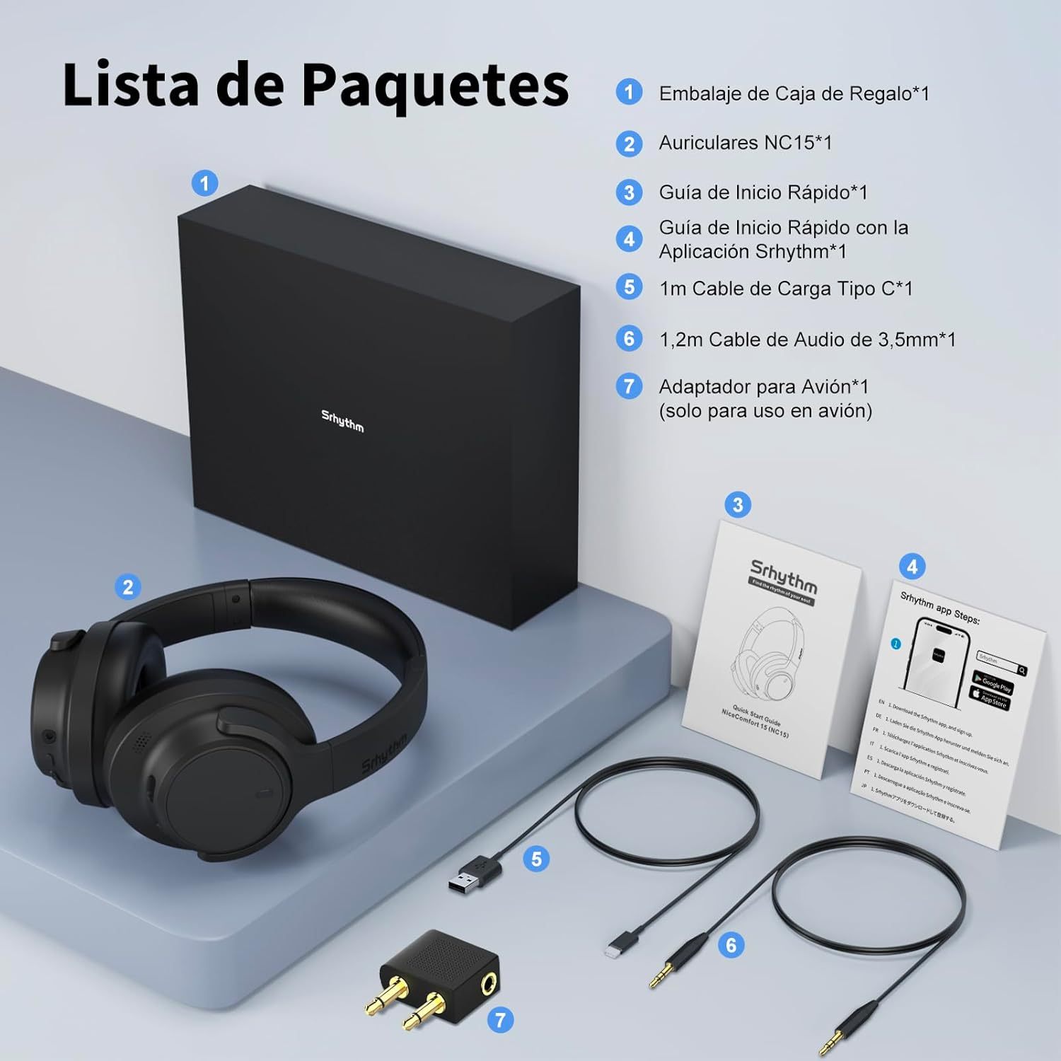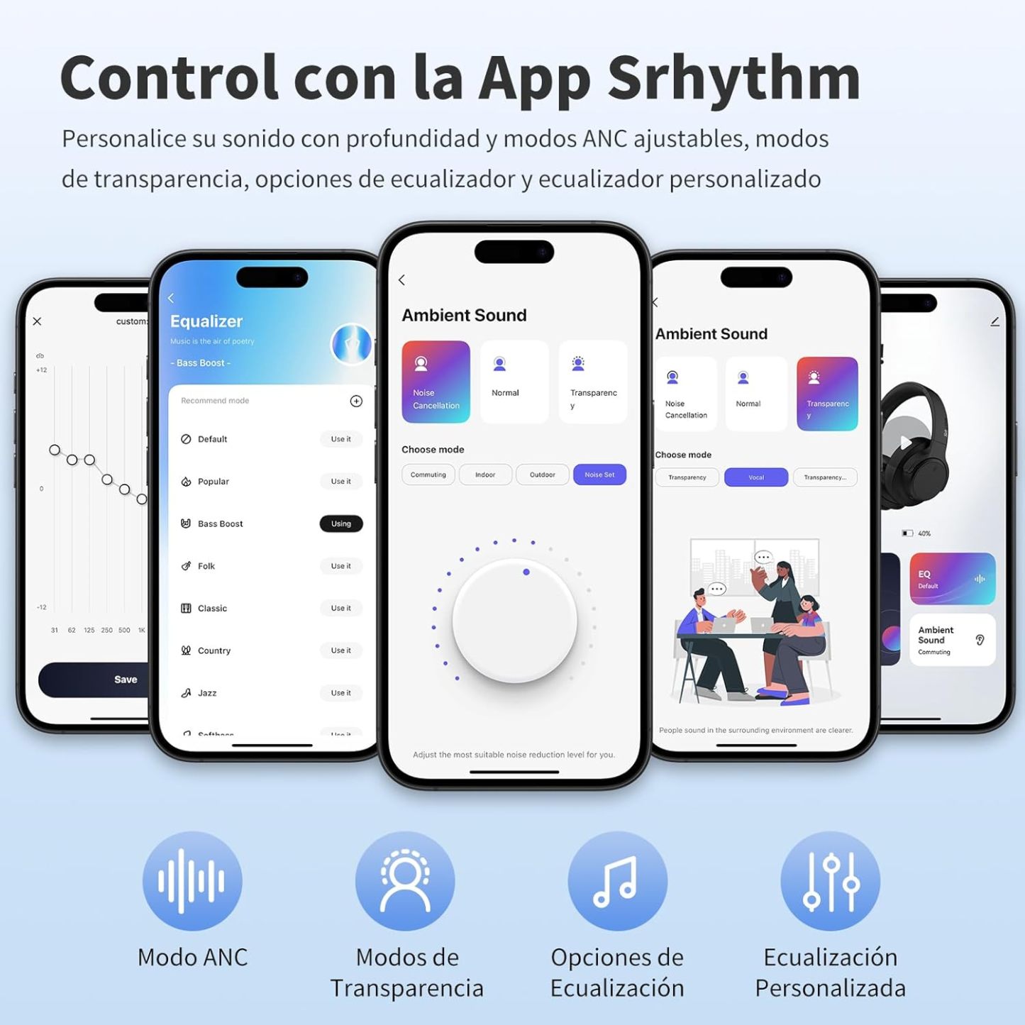 • Larga duración de 120 horas de reproducción y baja latencia: con una sola carga de la semana, esto es 5 días completos de música, llamadas y películas sin interrupciones. Disfruta de un sonido sin problemas gracias a Bluetooth 6.0, que se mantiene perfectamente sincronizado con tus vídeos y juegos. La aplicación Srhythm ofrece opciones para modos de ecualización y otras funciones