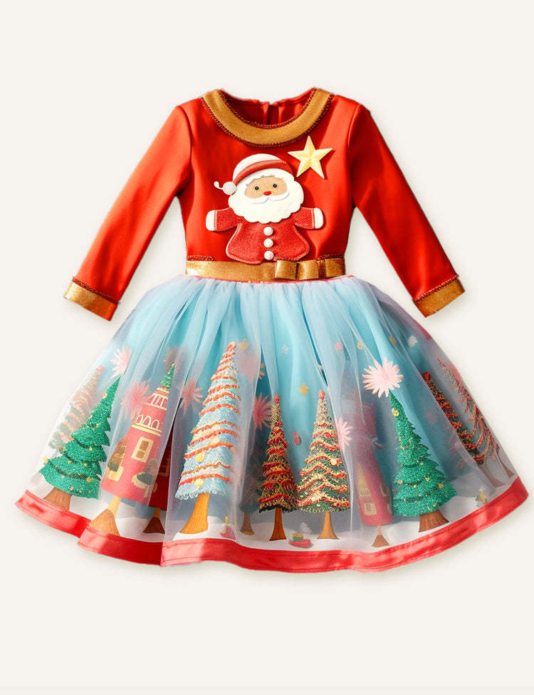 Last One!-Toddler Girls Santa Appliqué High Waist Puff Dress
