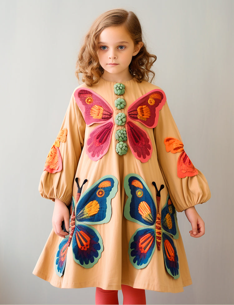 Toddler Kid Girl Big Butterfly Embroidered Long Sleeves Dress