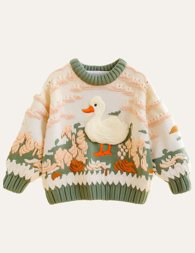 Last Few Left!-Toddler Kid Girl Cute Duck Long Sleeves Crew Neck Sweater
